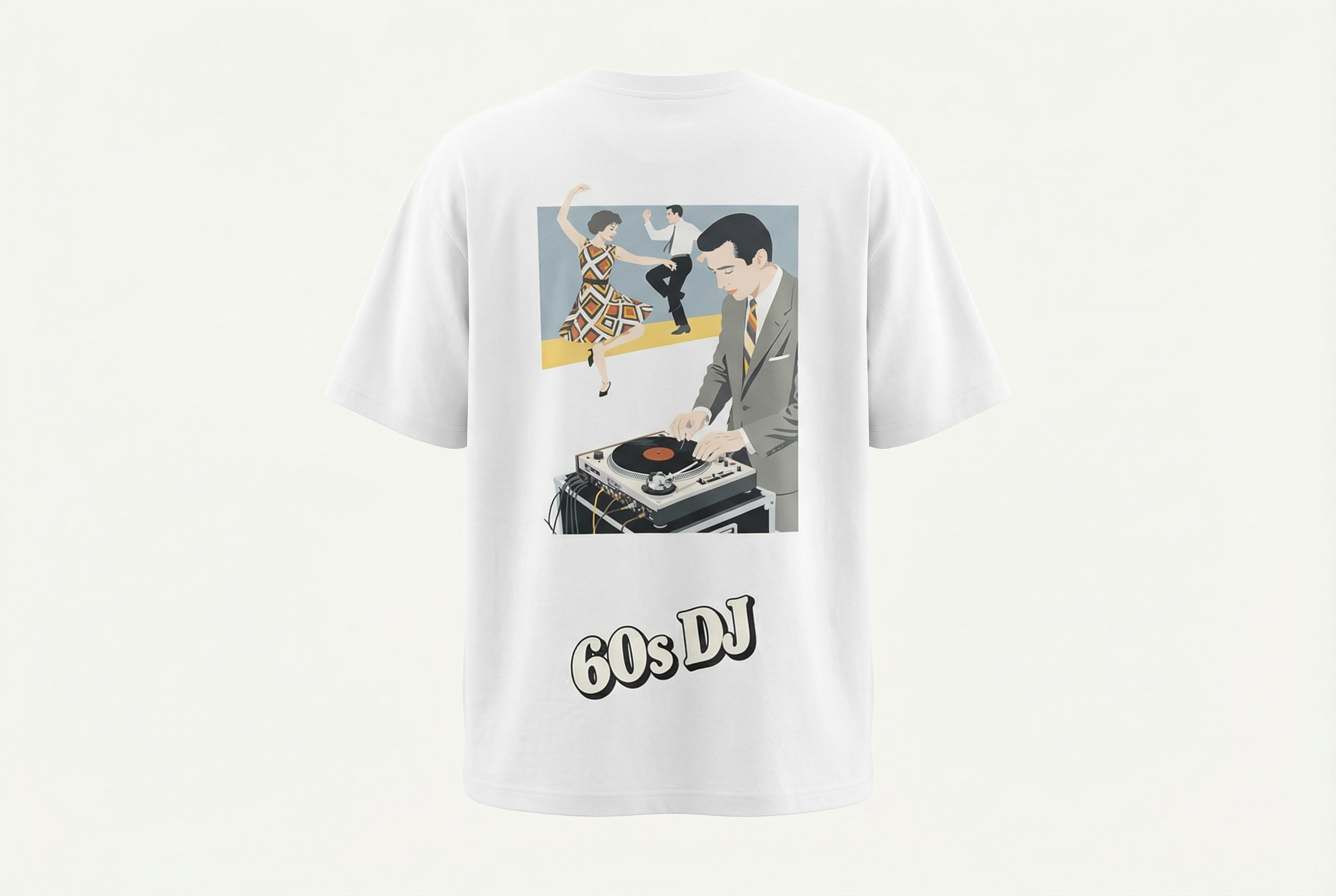 חולצות אוברסייז לגברים בעיצובים גרפיים בהשראת קצב, לילה ותרבות מוזיקלית.