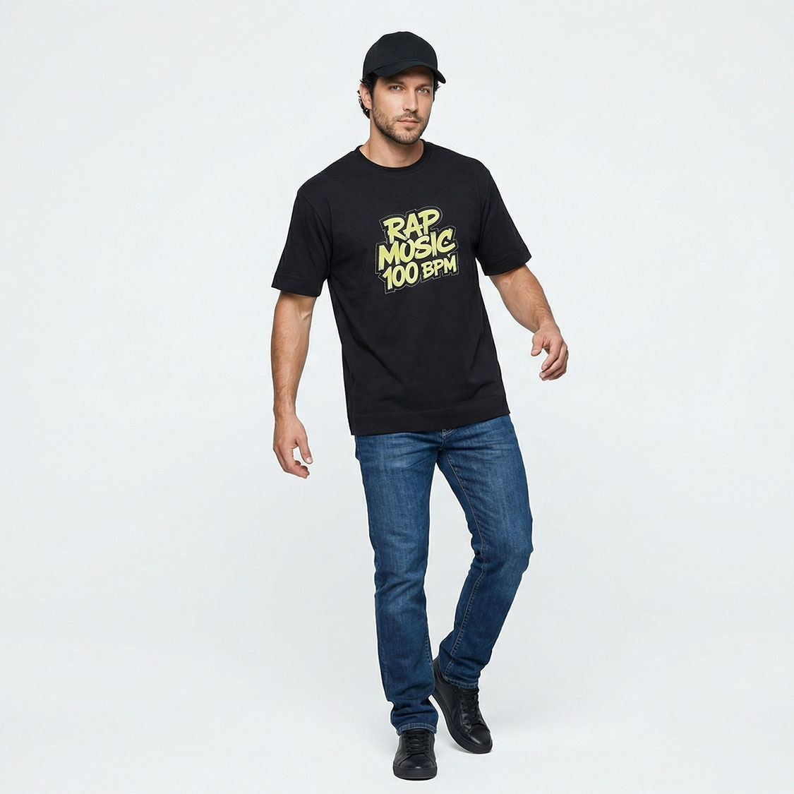 חולצה אוברסייז rap music משתלבת בקלות עם גינס רחב מכנס כהה או סניקרס אורבניות. היא יכולה להיות מרכז ההופעה או חלק מלוק שכבות שמשדר סטייל רחוב אותנטי.