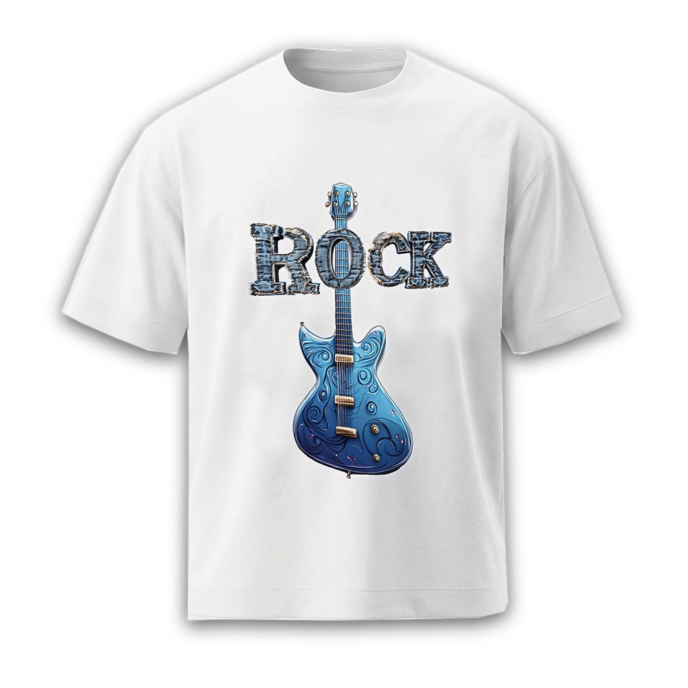חולצת אוברסייז גברים Rock Guitar בצבע לבן מבית Rhythm Design מביאה איתה אנרגיה של במה חיה ורוק אמיתי. ההדפס המרכזי של הגיטרה בגווני כחול עם הכיתוב ROCK יוצר מראה עוצמתי, חד ובולט – כזה שלא מתנצל, אלא מוביל את הקצב.