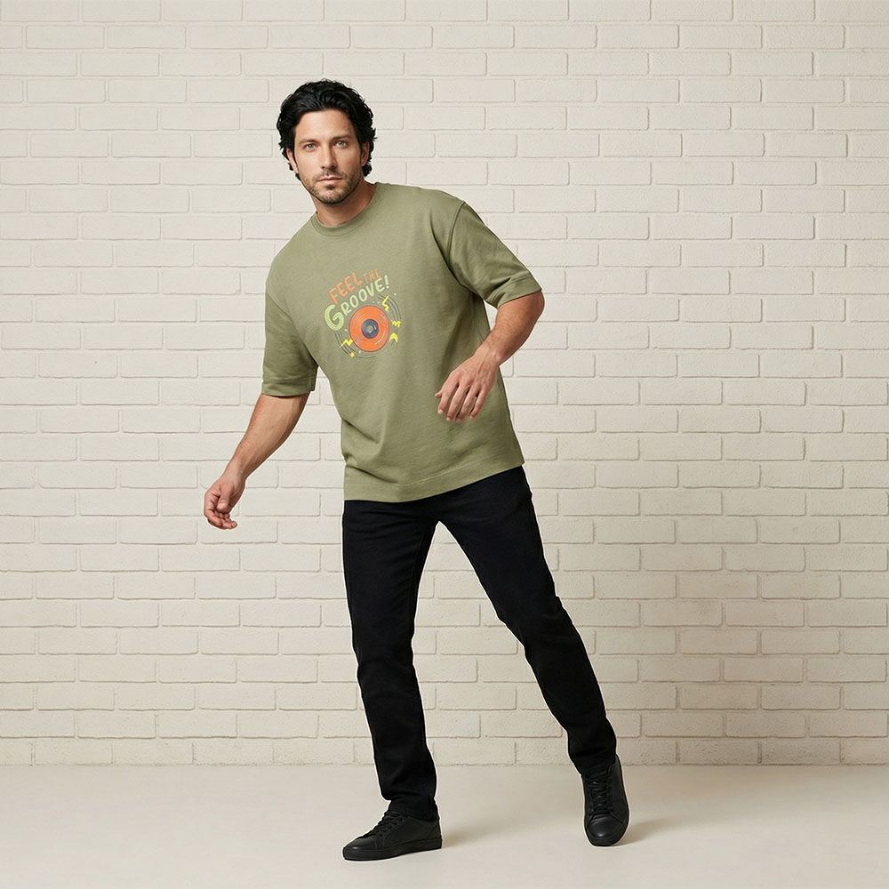 העיצוב של חולצת אוברסייז Feel The Groove משדר זרימה וקצב בצורה עדינה אך ברורה. ההדפס בנוי כך שהוא משתלב עם הבד והגזרה ויוצר תחושה של תנועה מתמשכת. זהו עיצוב שמדבר למי שמרגיש מוזיקה מבפנים ולא צריך הסברים.