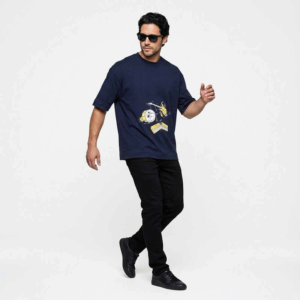 הגזרה הרחבה מעניקה חופש תנועה מלא ומתאימה לכל מבנה גוף. שילוב הכותנה והפוליאסטר יוצר בד נעים למגע נושם ועמיד שמתאים ללבישה ממושכת. החולצה שומרת על הצורה שלה לאורך זמן וההדפס נשאר חד וברור גם לאחר כביסות רבות.