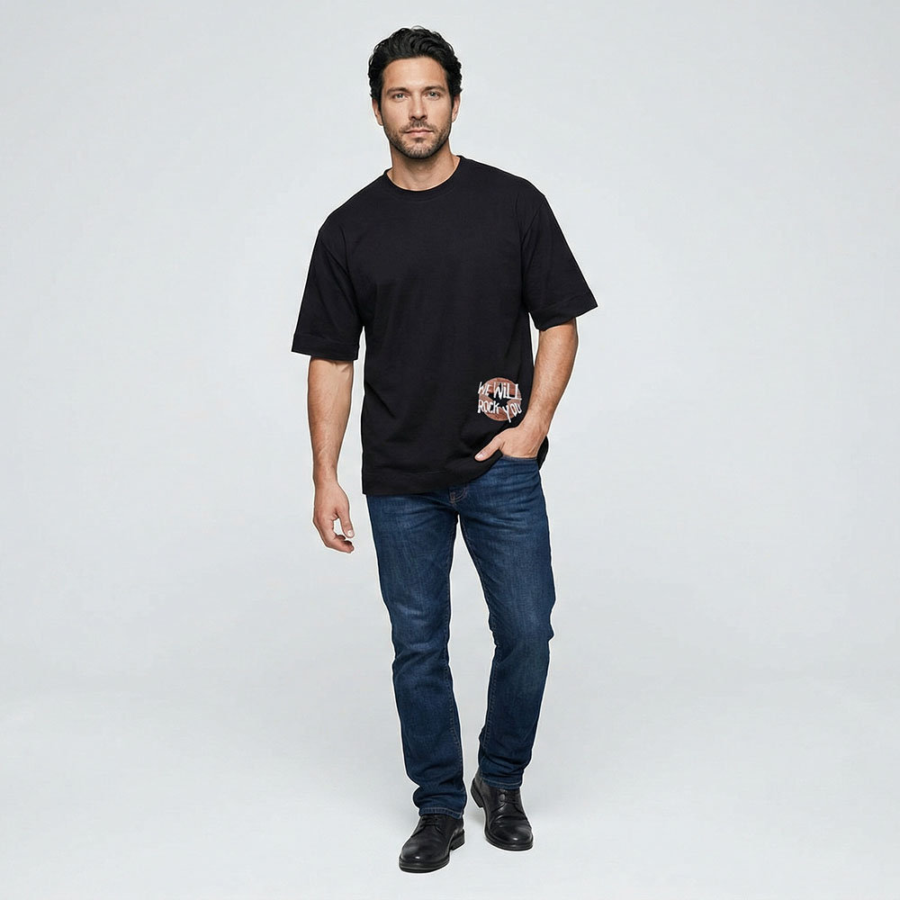 חולצת אוברסייז Rock & Rool משתלבת עם גינס כהה מכנס רחב או נעליים אורבניות ויוצרת לוק מחוספס עם נוכחות. היא יכולה להיות פריט מרכזי או חלק מלוק שכבות שמדגיש אופי ועומק.