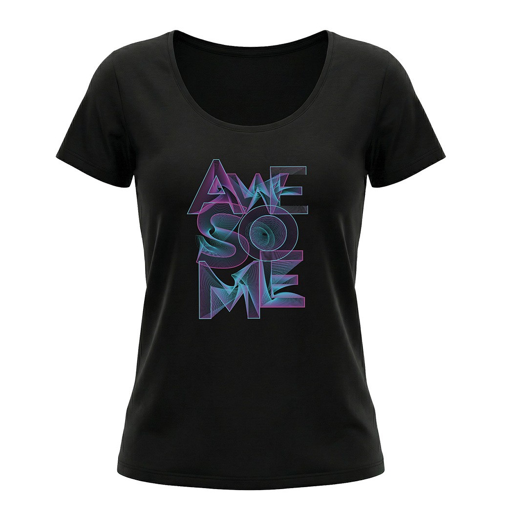 חולצת נשים Awesome בצבע שחור מבית Rhythm Design מביאה איתה שילוב מושלם של סטייל מודרני ואנרגיה צבעונית. ההדפס הטיפוגרפי בגווני ניאון יוצר מראה דינמי, מלא חיים ובולט בדיוק במידה הנכונה.